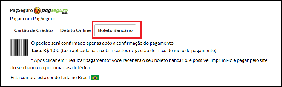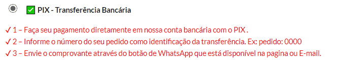 Obs.: Esta modalidade de pagamento não é recomendada para pagamento de serviços sob encomenda, pois afeta diretamente o prazo de entrega, adiando o agendamento da entrega para pelo menos 2 dias depois do informado ao contratar o serviço.