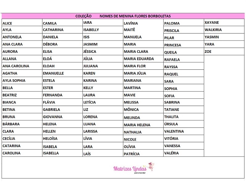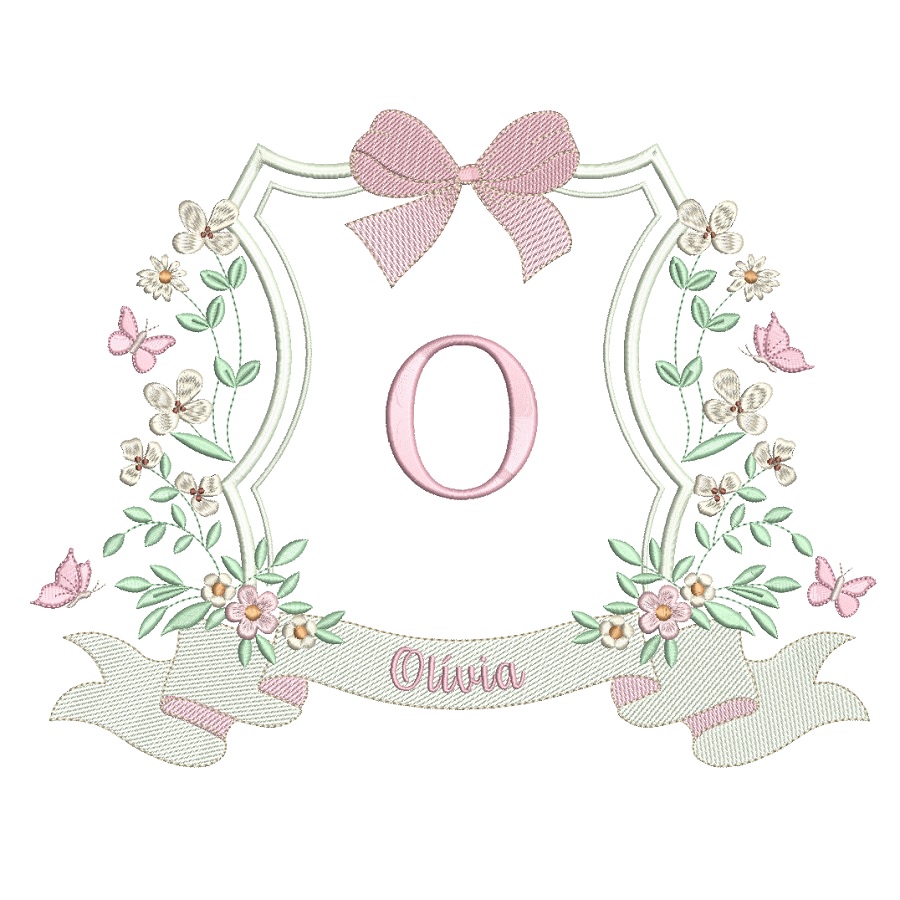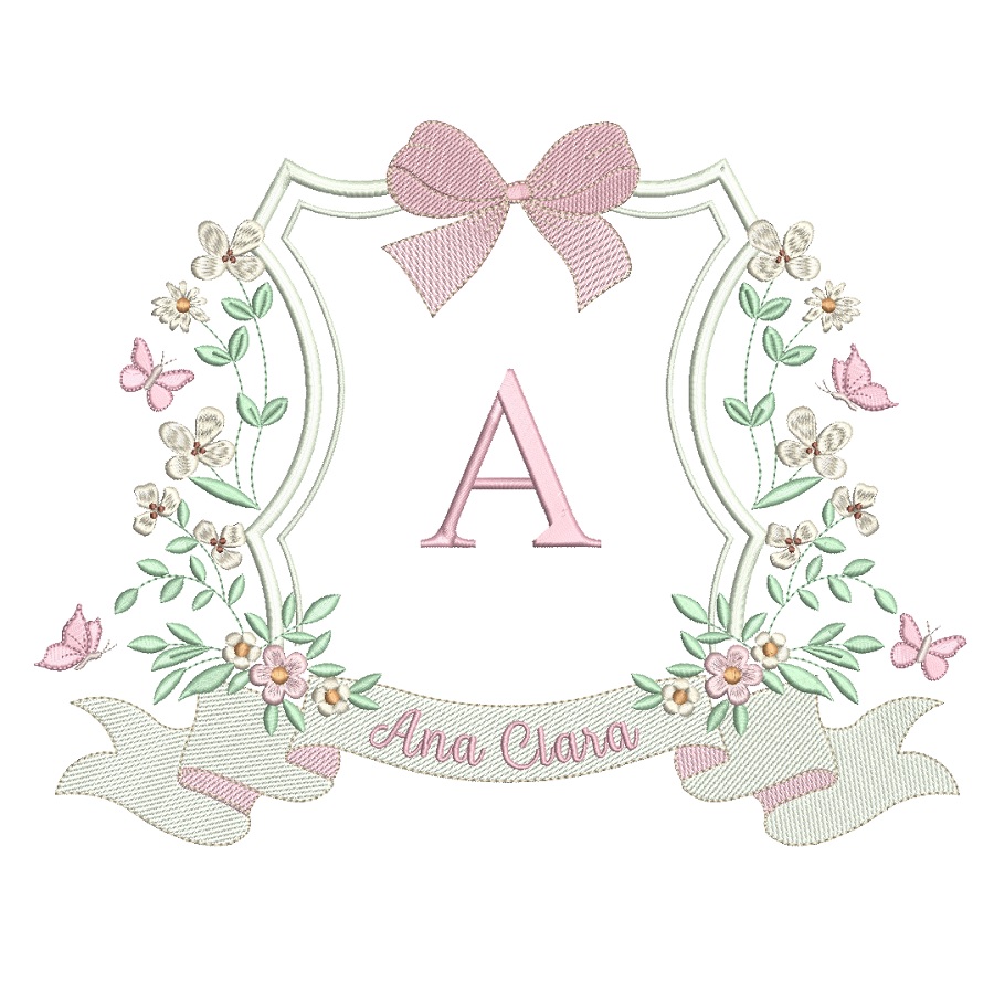 Matriz De Bordado Coleção Nomes Prontos Brasão Flores Para Meninas para bordar.