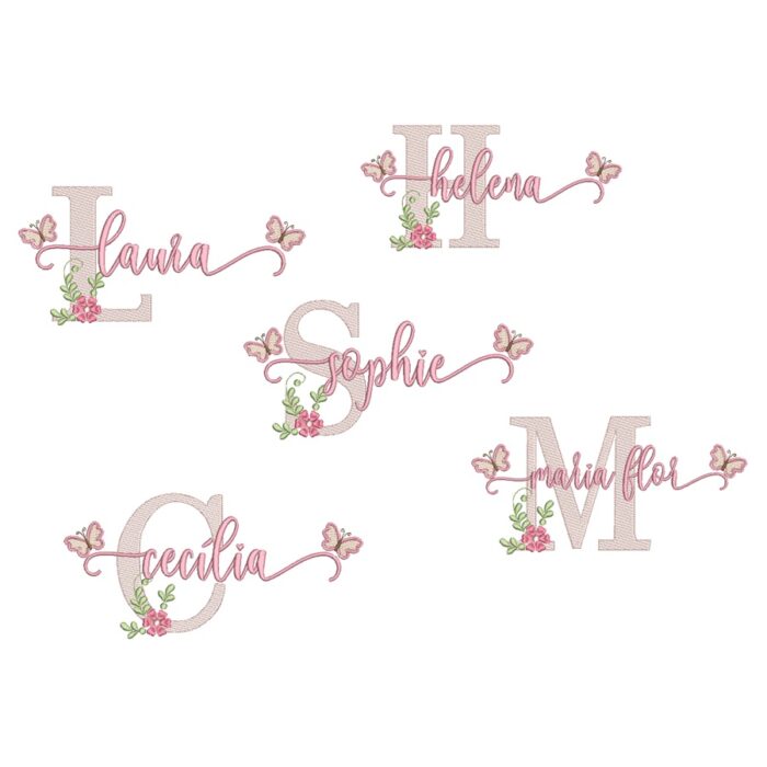 Matriz De Bordado Coleção Nomes Prontos Flor e Borboletas Para Meninas para bordar.