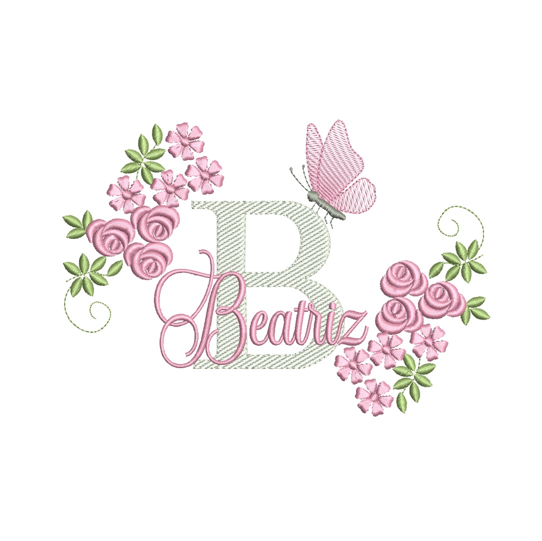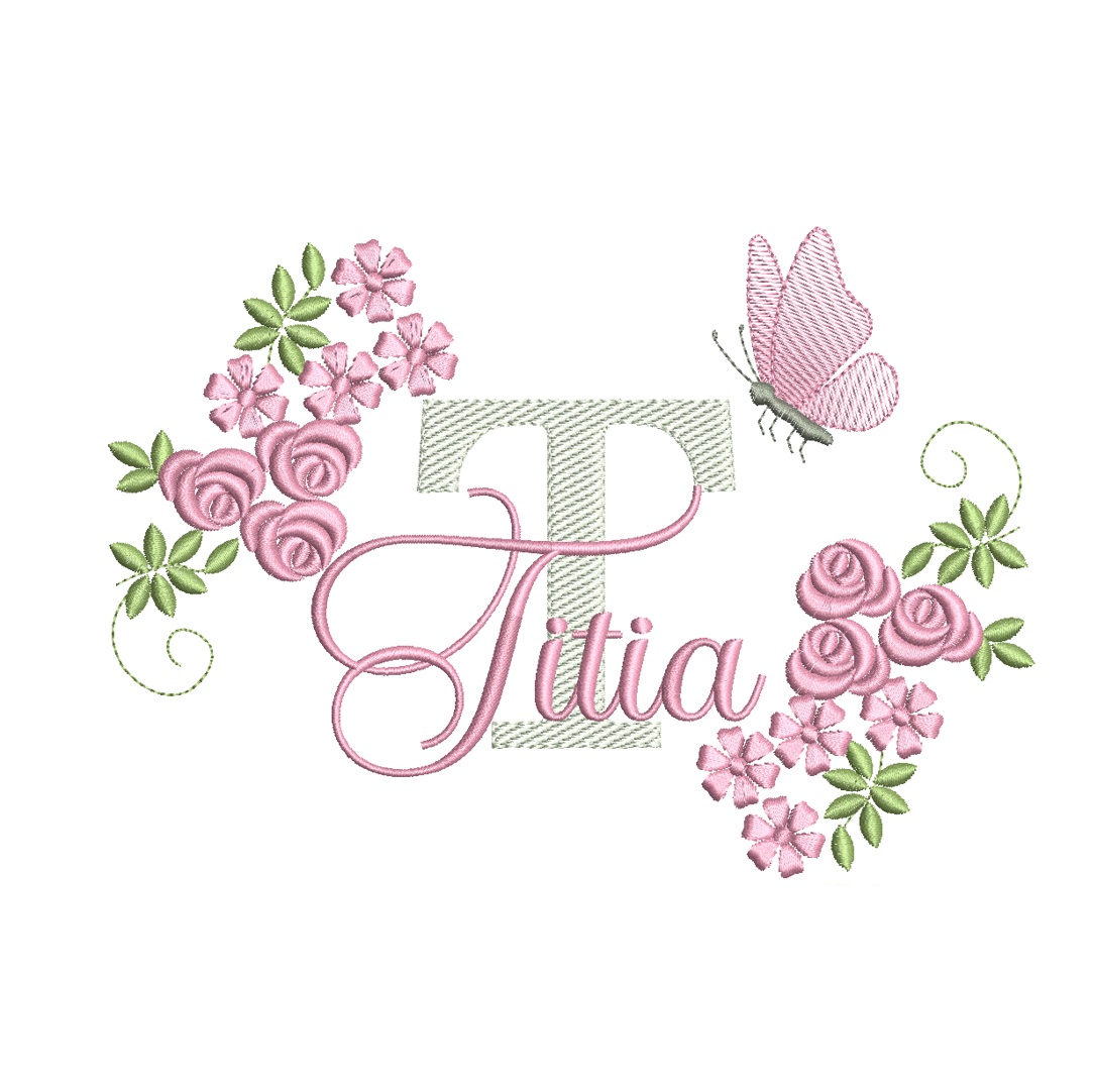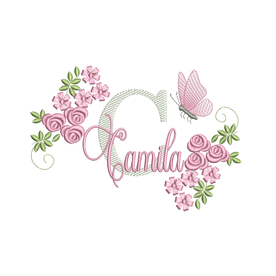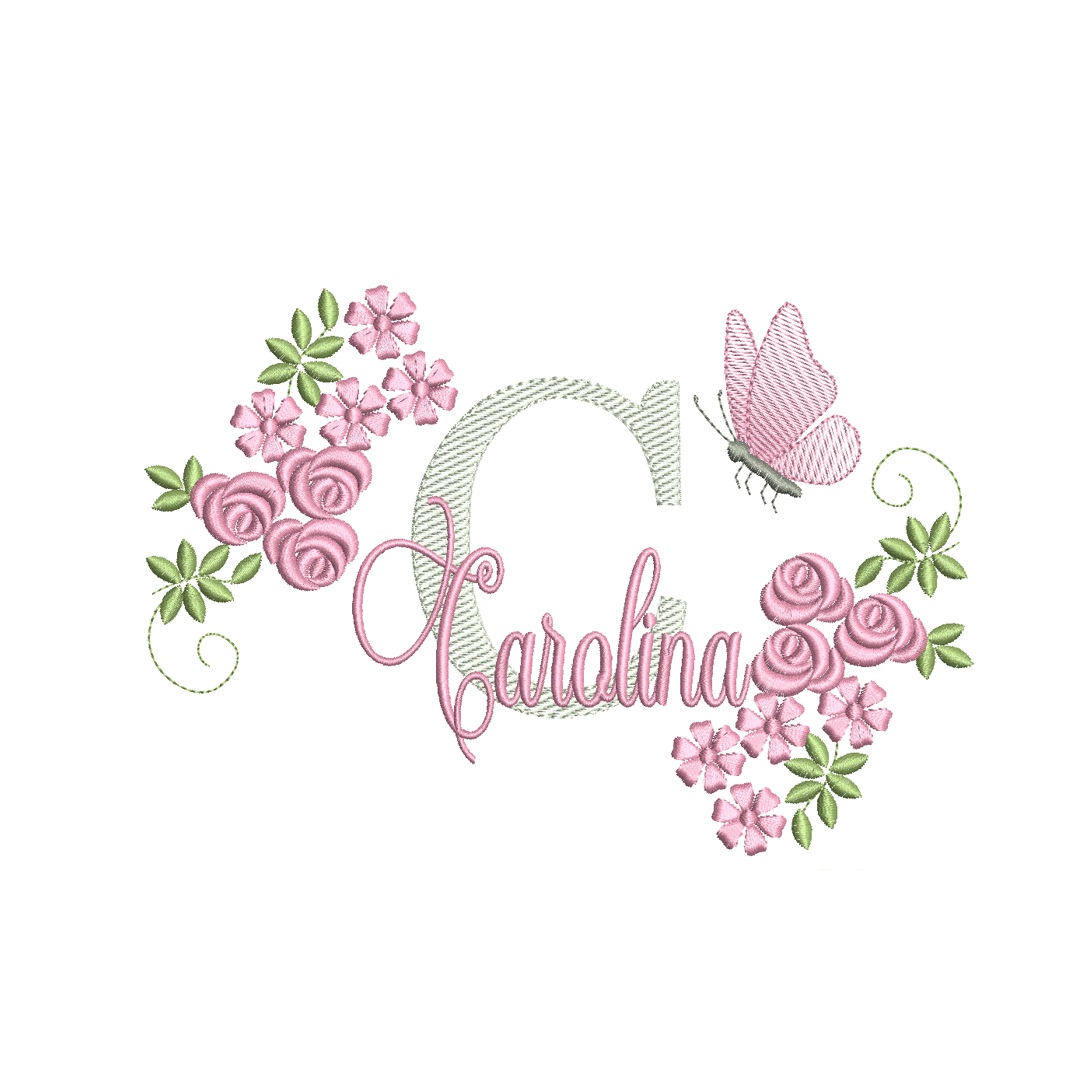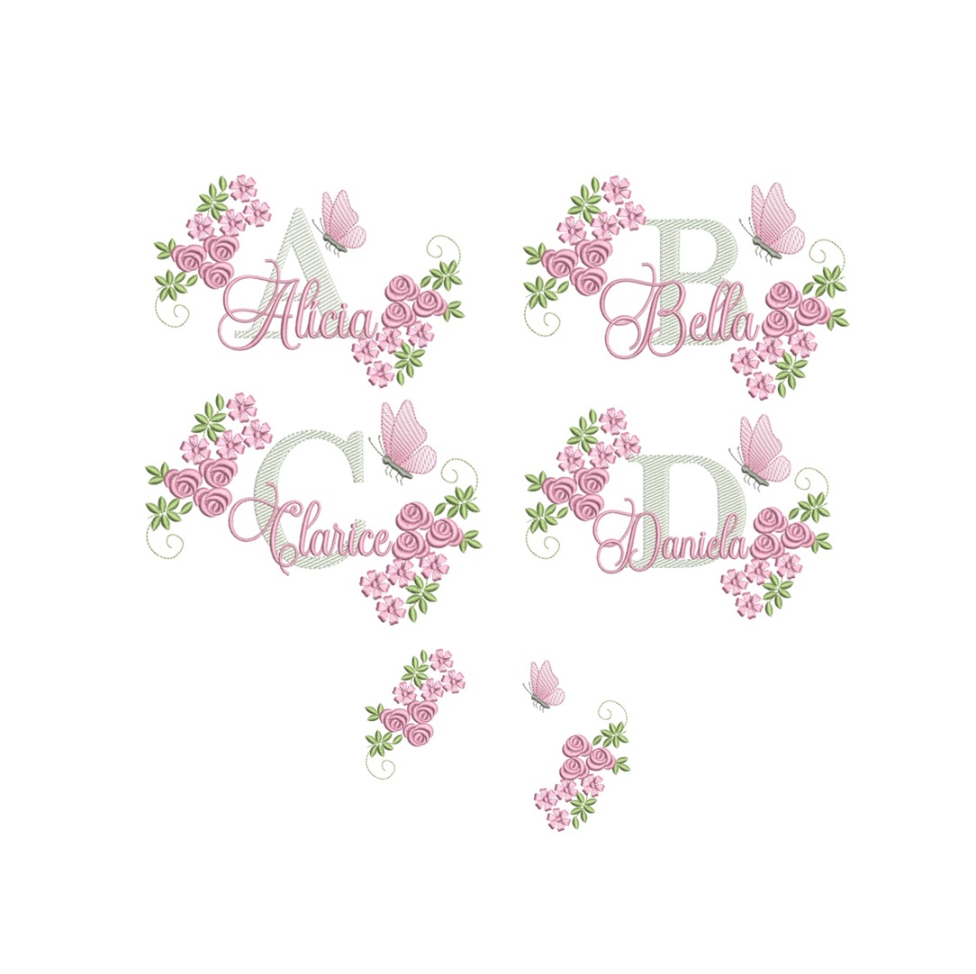 Matriz de Bordado 150 Nomes Feminino Flores Borboletas