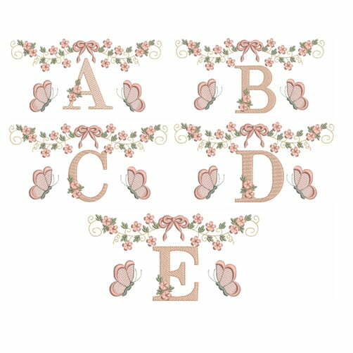Matriz de Bordado Alfabeto Arabesco Flores Borboletas Para Bordar