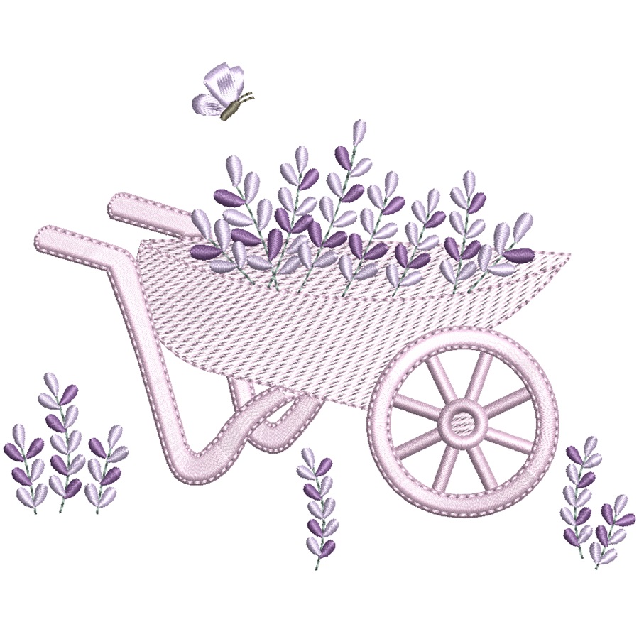 Matriz De Bordado bicicleta com certinho de flores lavanda