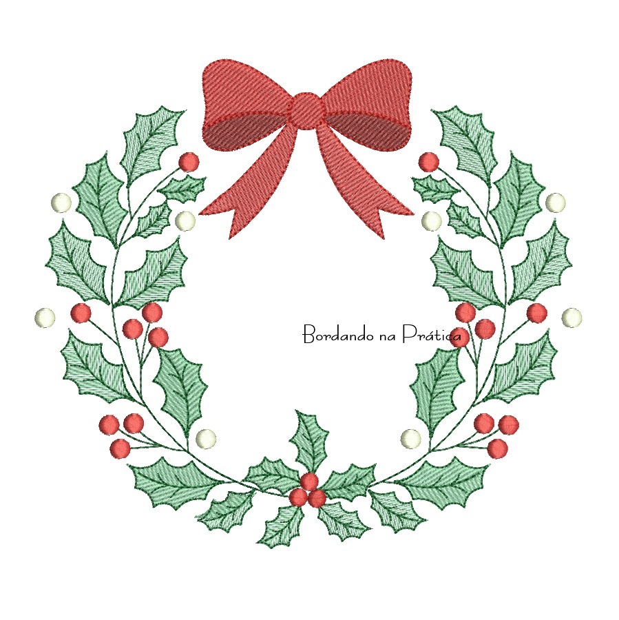 Matriz De Bordado Guirlanda de natal com passarinho e laço.