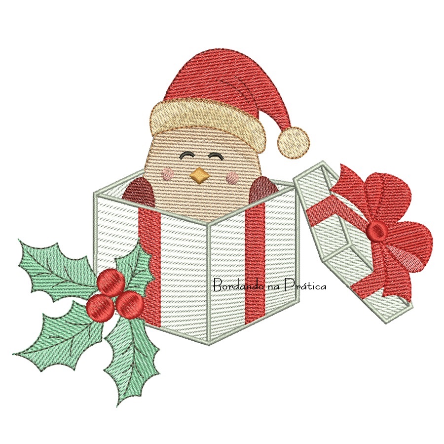 Matriz De Bordado Passarinho saindo da caixa de presente.