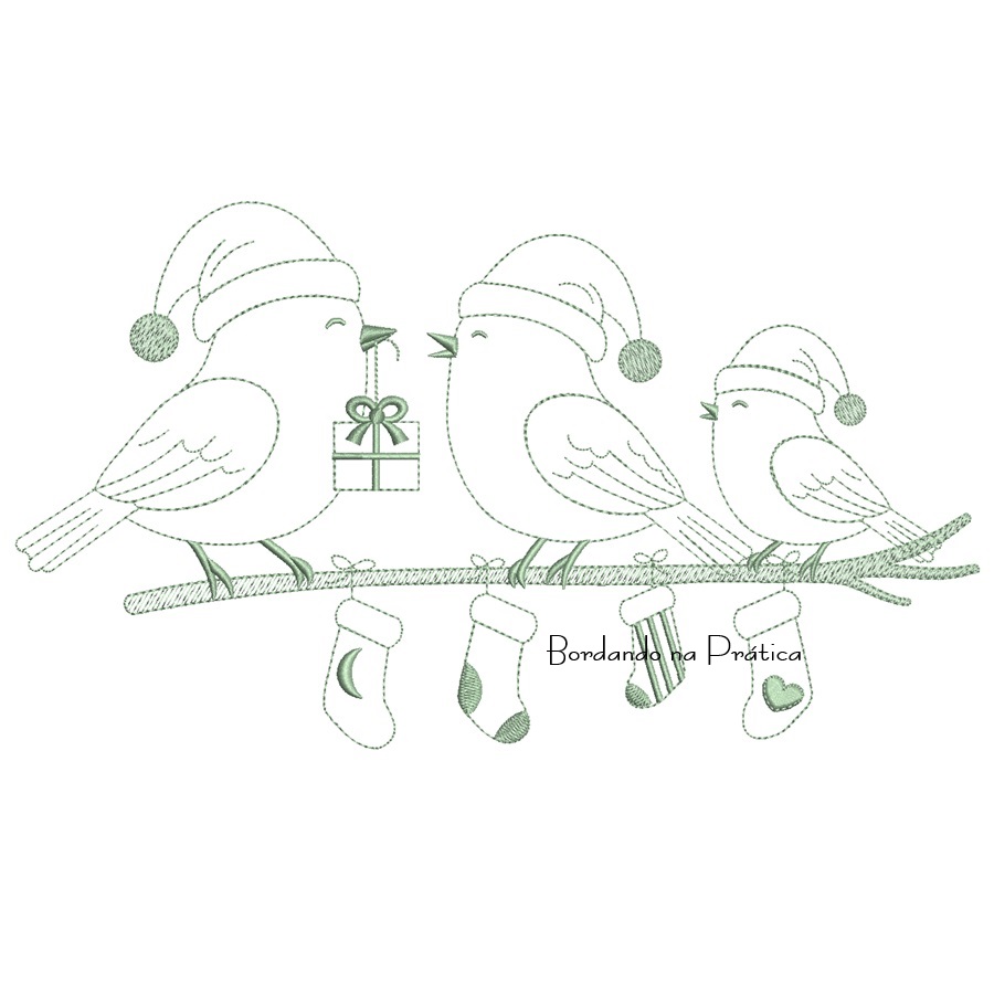 Matriz de bordado Coleção Passarinhos de Natal para bordar