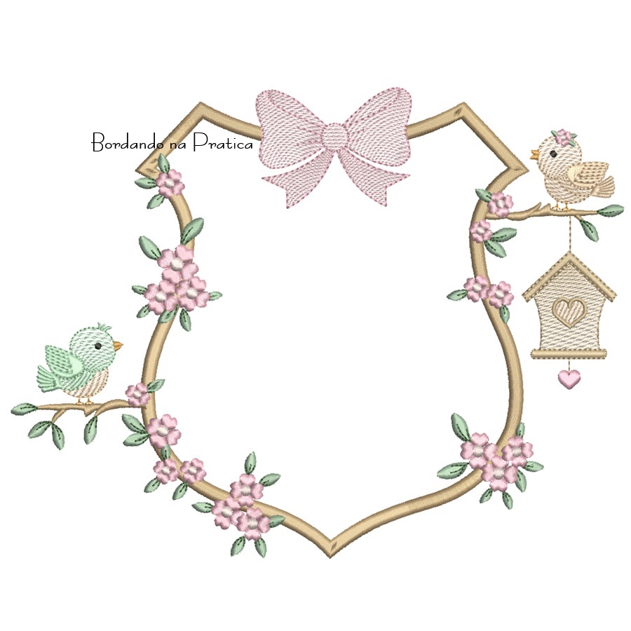 Matriz de Bordado Brasão Passarinhos com gaiola para bordar