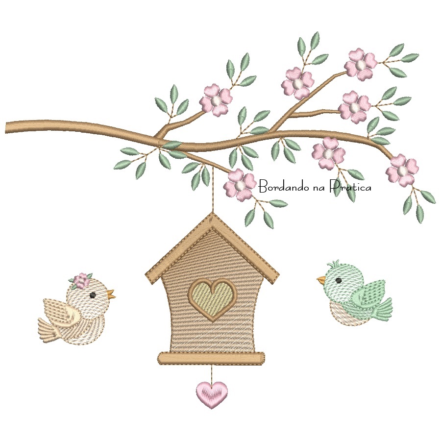 Matriz de Bordado Galho com casinha e passarinhos para bordar