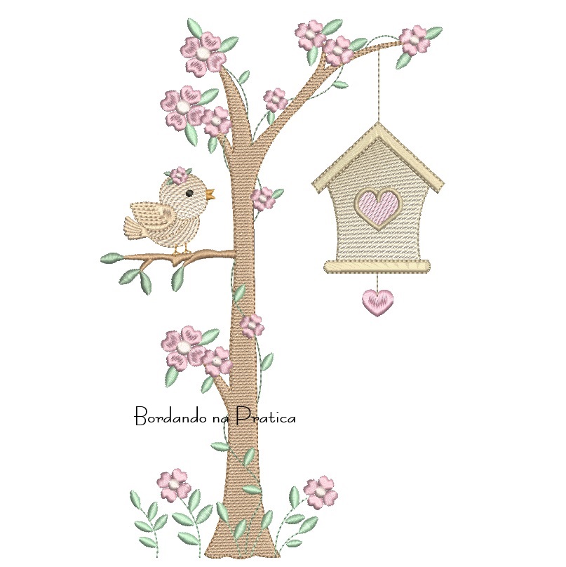 Matriz de Bordado arvore com casinha de passarinho para bordar