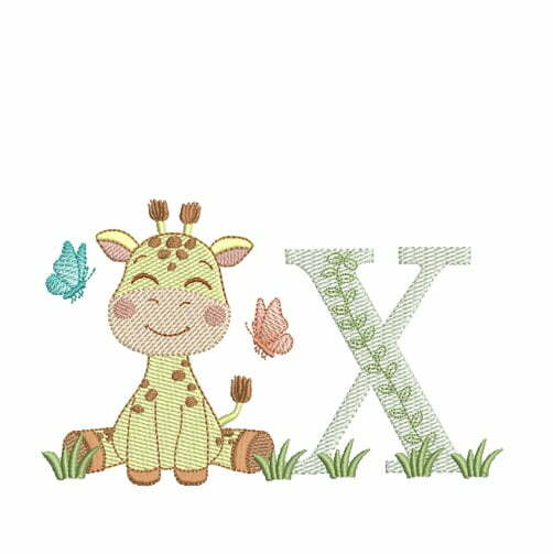 Matriz de Bordado Girafinha Letra X para Bordar.