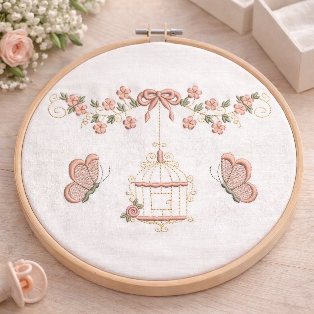 Matriz de Bordado – Jardim Gaiola Borboletas Para Bordar