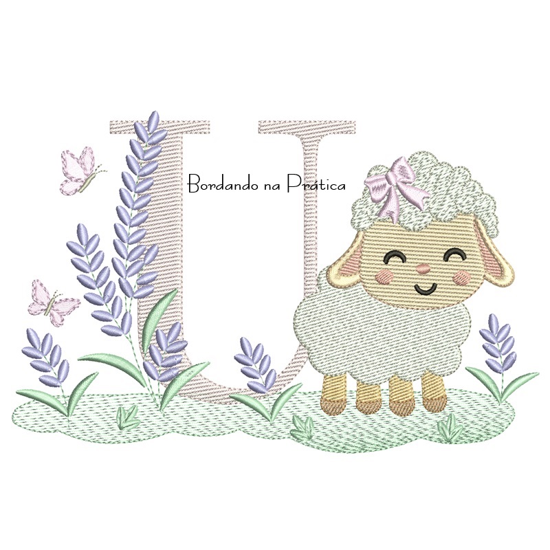Matriz de Bordado Letra U Ovelhinha Lavanda para Bordar