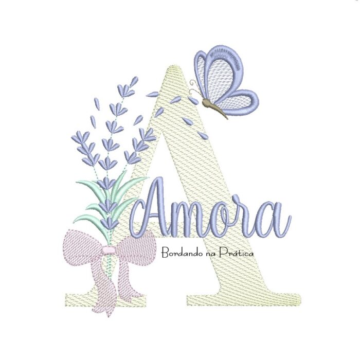 Matriz de Bordado – Nome Amora Lavanda com Laço