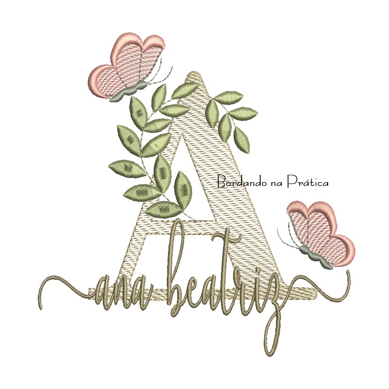 Matriz de Bordado – Nome Ana Beatriz folhas e Borboletas