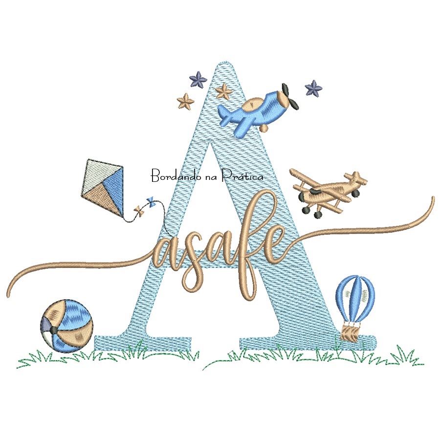 Matriz de Bordado Nome Asafe com Brinquedos Para Bodar