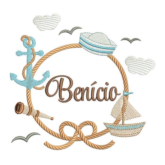 Matriz De Bordado Nome Benício para bordar. Letra B Marinheiro Veleiro