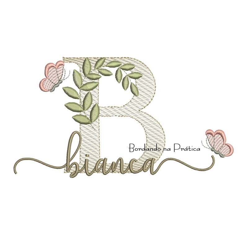 Matriz de Bordado – Nome Bianca folhas e Borboletas