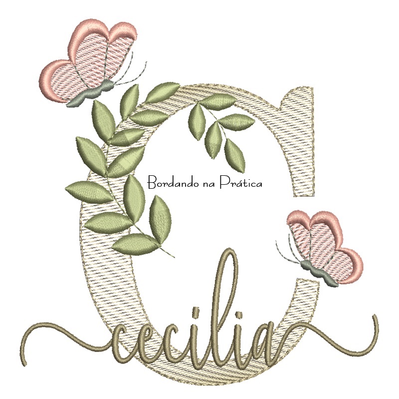Matriz de Bordado – Nome Cecília folhas e Borboletas