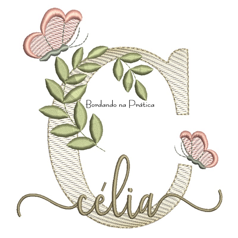 Matriz de Bordado – Nome Célia folhas e Borboletas