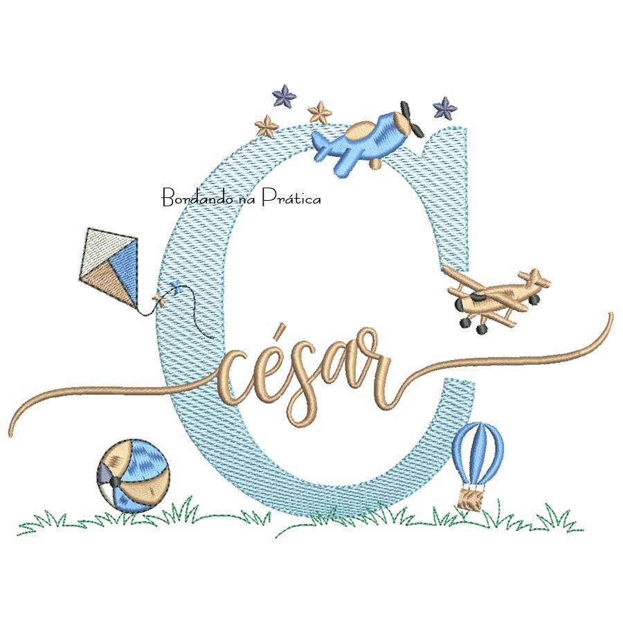 Matriz de Bordado Nome César com Brinquedos Para Bodar