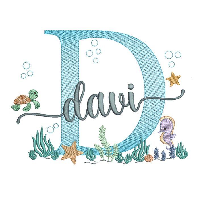 Matriz De Bordado Nome Davi para bordar. Letra D mais Nome Fundo do Mar