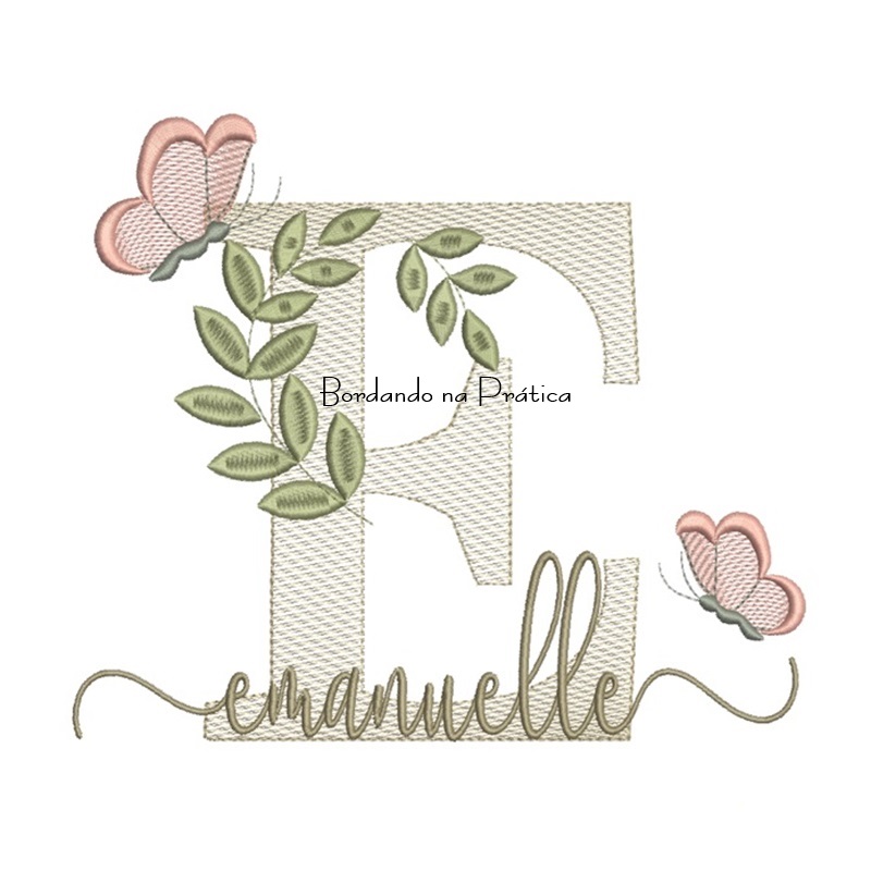 Matriz de Bordado – Nome Emanuelle folhas e Borboletas