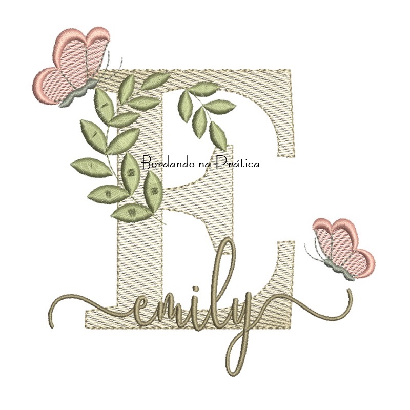Matriz de Bordado – Nome Emily folhas e Borboletas
