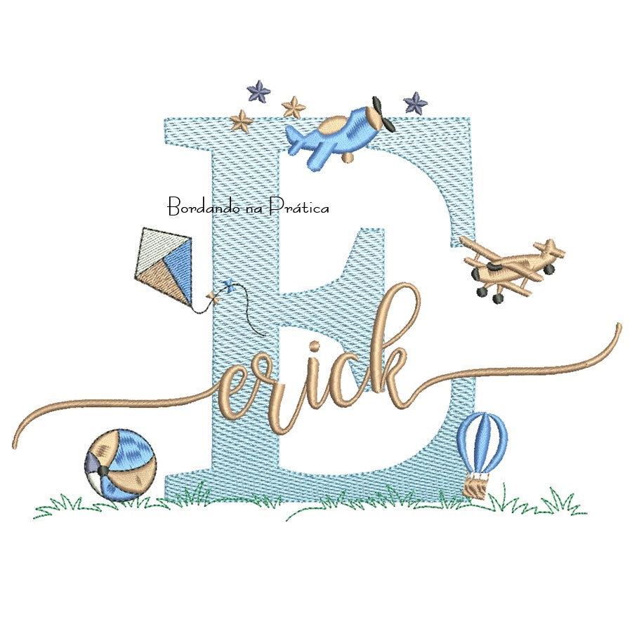 Matriz de Bordado Nome Erick com Brinquedos Para Bodar