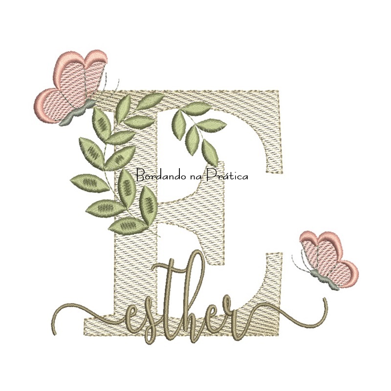 Matriz de Bordado – Nome Esther folhas e Borboletas