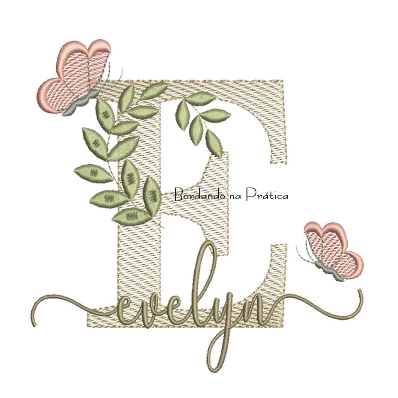 Matriz de Bordado – Nome Evelyn folhas e Borboletas