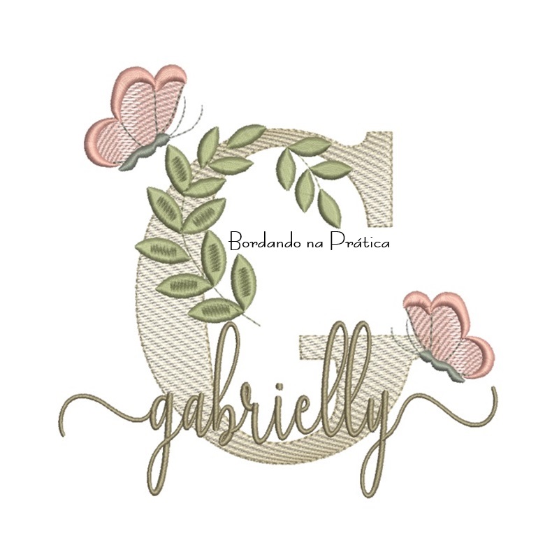 Tags: Matriz de Bordado - Nome Gabrielly folhas e Borboletas, matriz de bordado nome de menina para bordar, nome de menina para bordar, Nome Gisele para bordar