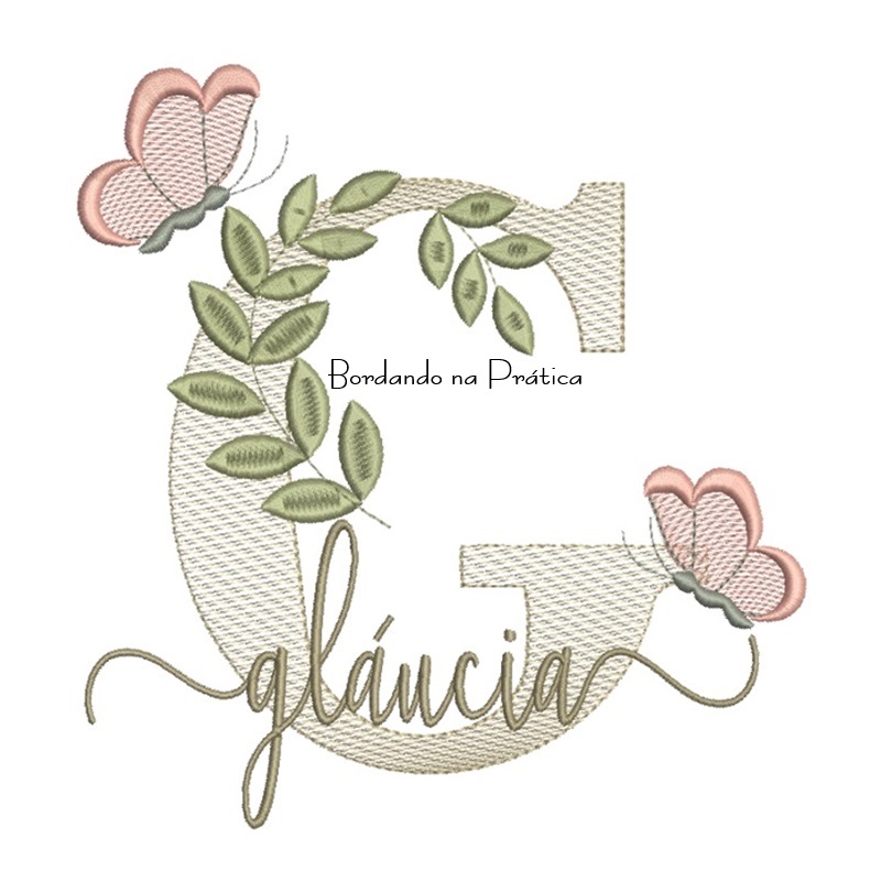 Matriz de Bordado – Nome Gláucia folhas e Borboletas