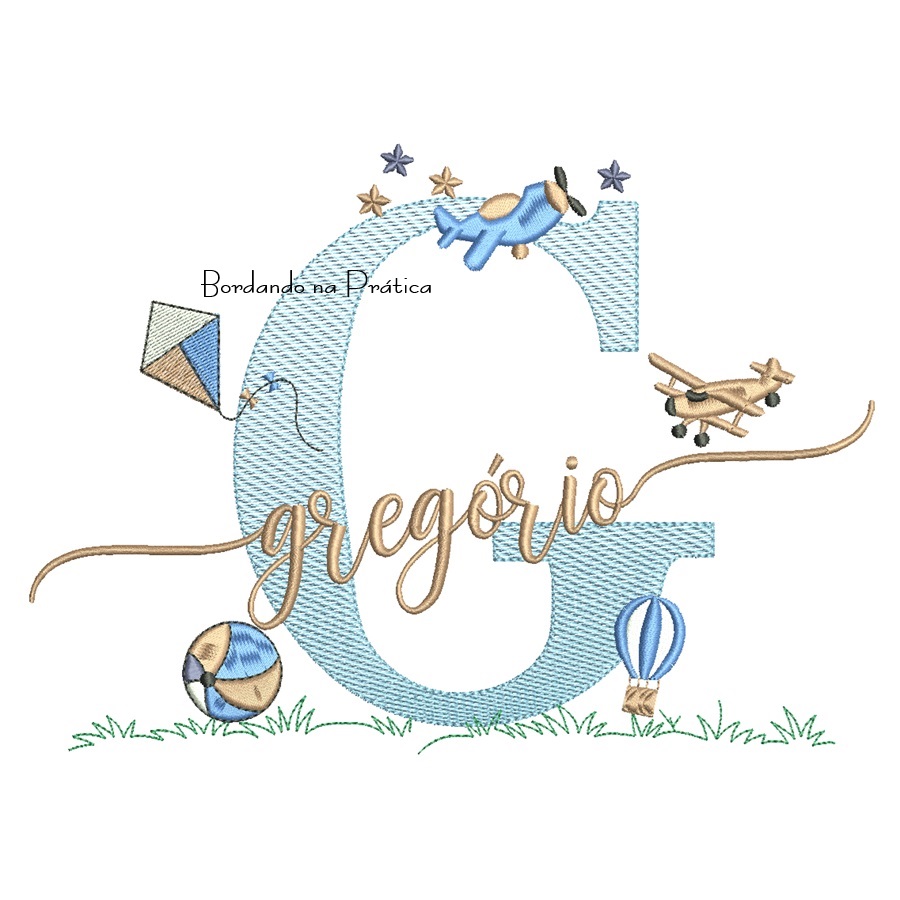 Matriz de Bordado – Nome Gregório com Brinquedos