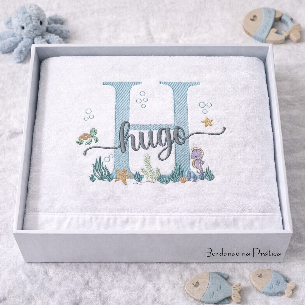 Matriz De Bordado Nome Hugo Fundo do Mar para bordar.