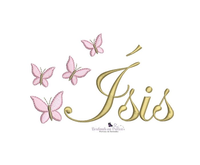 Matriz De Bordado Nome Ísis com Borboletas para bordar.