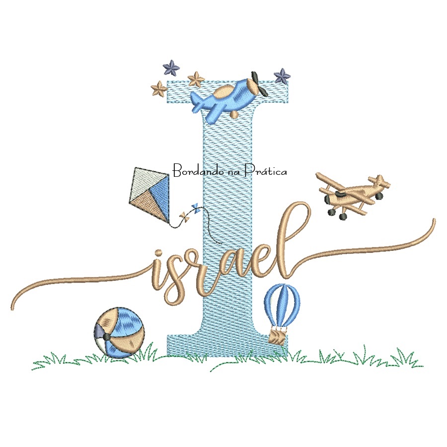 Matriz de Bordado Nome Israel com Brinquedos  Para Bordar