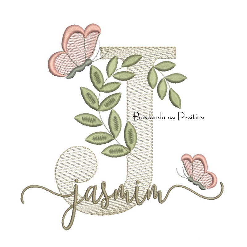 Matriz de Bordado – Nome Jasmim folhas e Borboletas