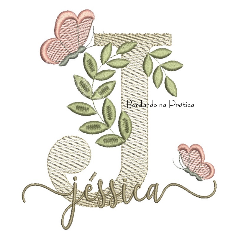 Matriz de Bordado – Nome Jéssica folhas e Borboletas