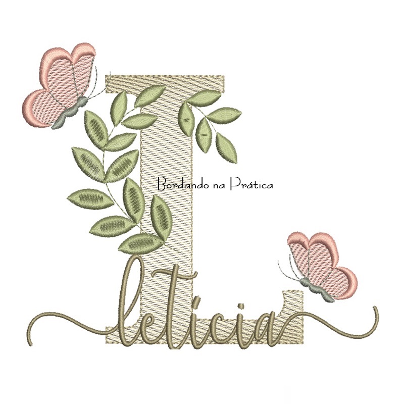 Matriz de Bordado – Nome Letícia folhas e Borboletas