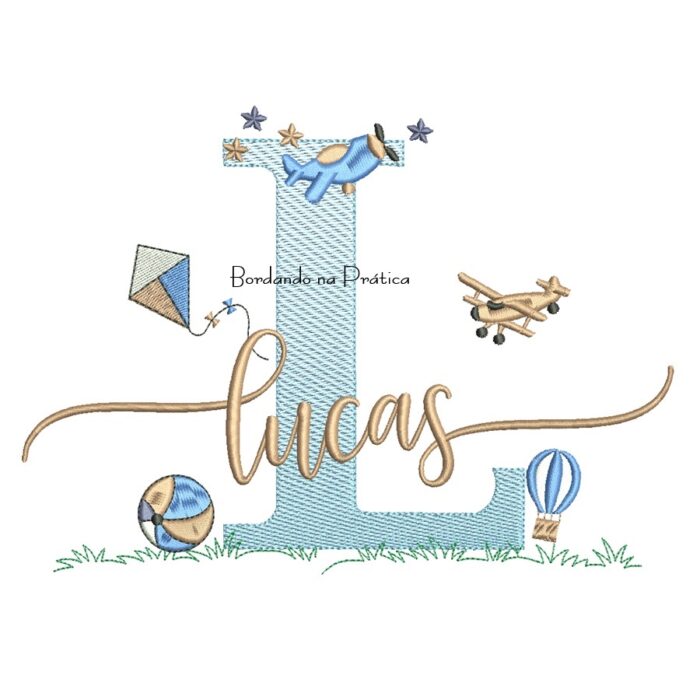 Matriz de Bordado – Nome Lucas com Brinquedos