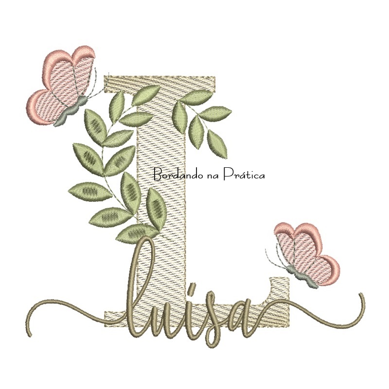 Matriz de Bordado – Nome Luísa folhas e Borboletas