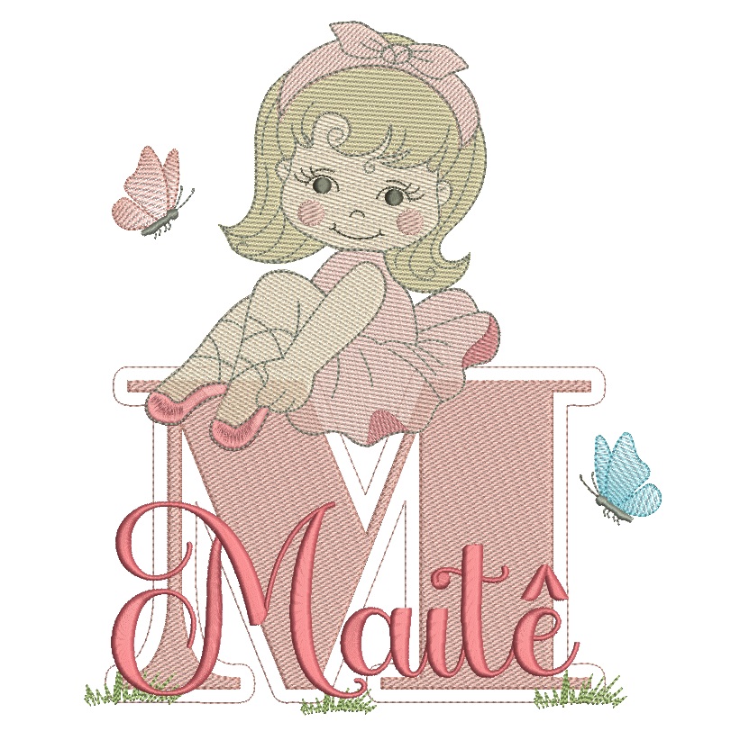 Matriz De Bordado Nome Maitê com Bailarina para bordar