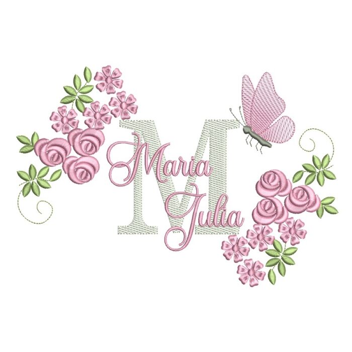 Matriz De Bordado Nome Maria Julia para bordar. Letra M sobreposta com nome.