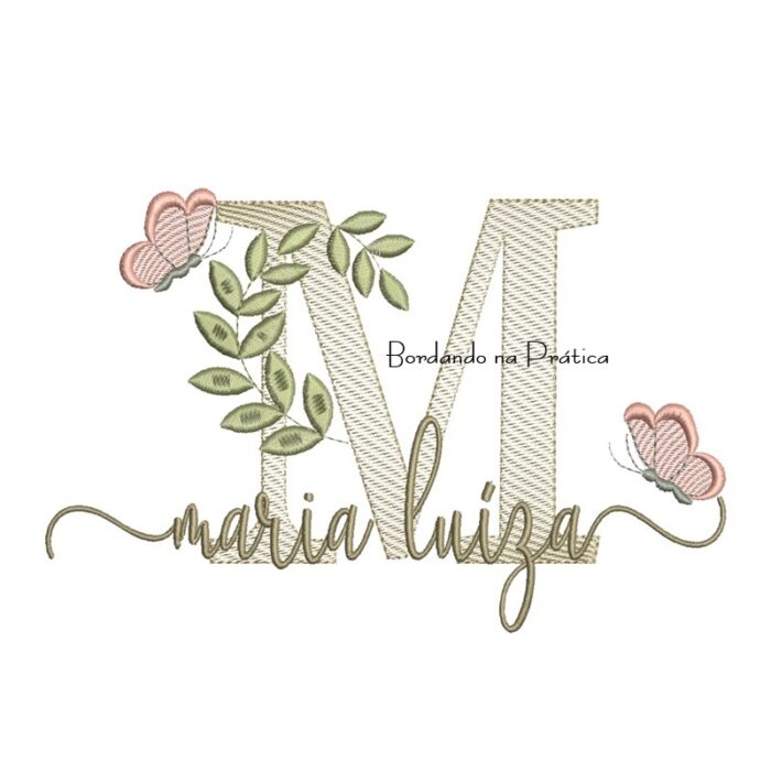 Matriz de Bordado – Nome Maria Luíza folhas e Borboletas