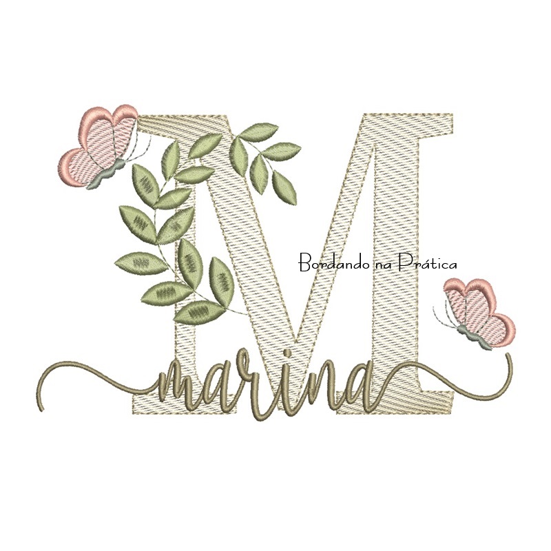 Matriz de Bordado – Nome Marina folhas e Borboletas