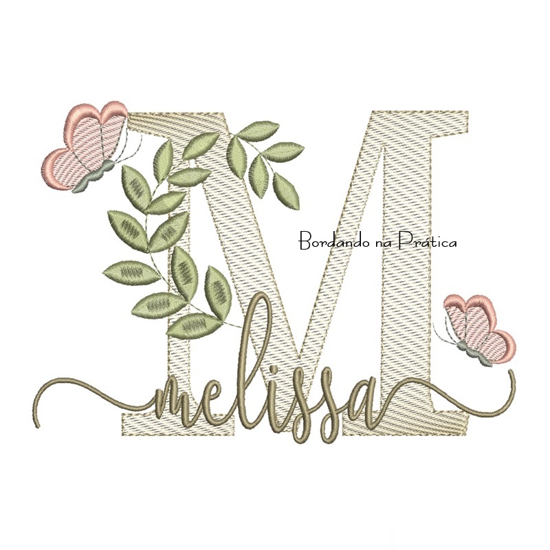 Matriz de Bordado – Nome Melissa folhas e Borboletas