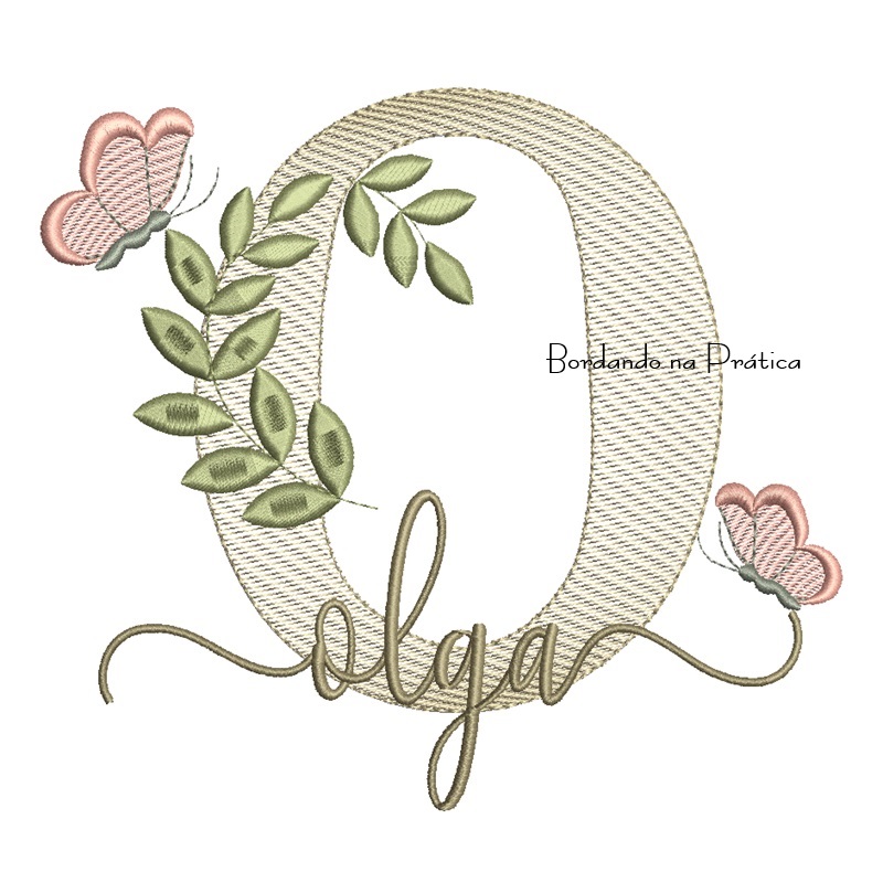Matriz de Bordado – Nome Olga folhas e Borboletas