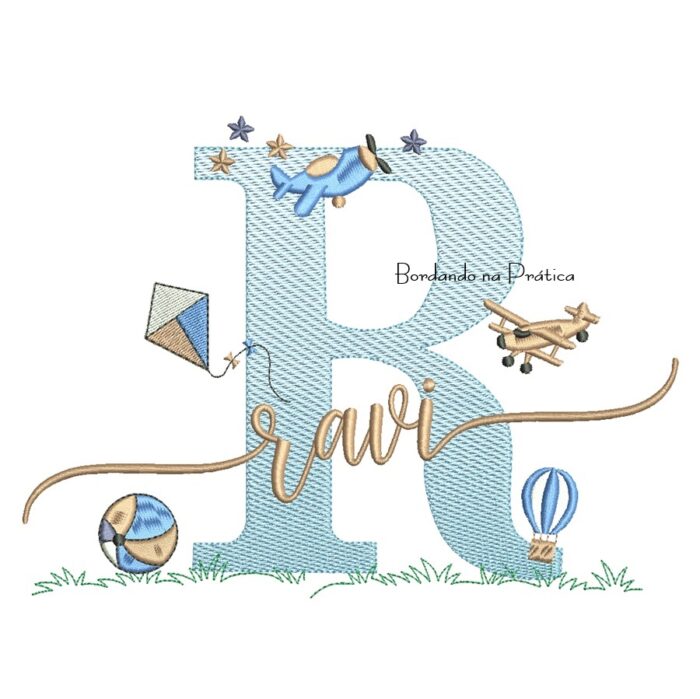 Matriz de Bordado – Nome Ravi com Brinquedos