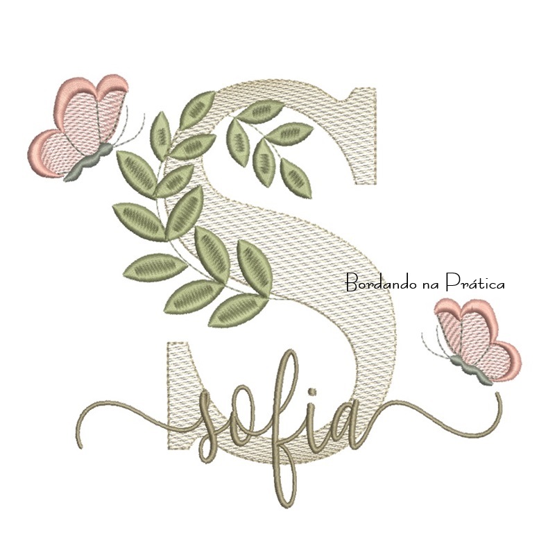 Matriz de Bordado – Nome Sofia folhas e Borboletas