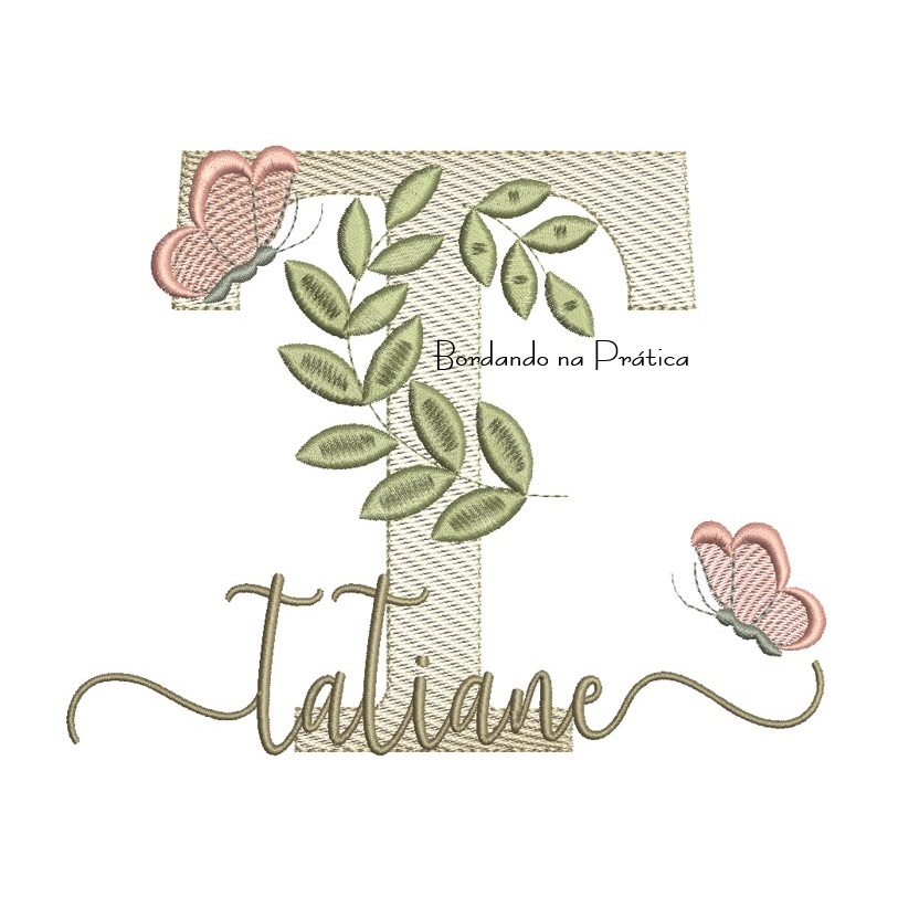 Matriz de Bordado – Nome Tatiane Folhas e Borboletas