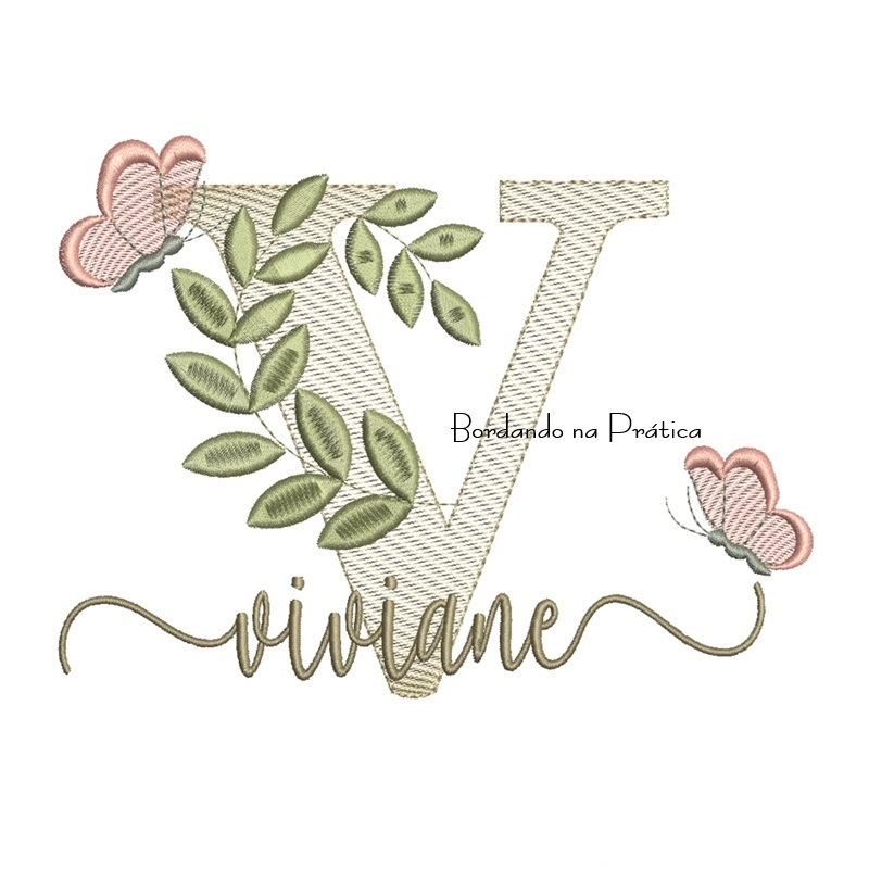 Matriz de Bordado – Nome Viviane Folhas e Borboletas